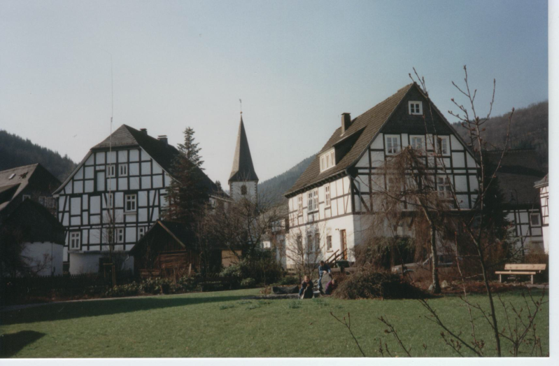 Zwart-wit vakwerk is typisch voor de Sauerlandische huizen. De bouwmaterialen zijn van eigen bodem: breuksteen en leisteen, eikenhout voor dorpels en steunbalken.