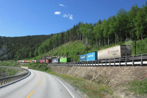 We nemen opnieuw de E6 richting Oslo, maar nu het deel van de weg dat we nog niet kennen. Het landschap is zeer ruw maar ook zeer mooi. Er is weinig begroeiing, langs de weg zien we af en toe het treinspoor dat ook aan de Magalaupe-camping voorbijkomt. Aan enkele parkings staan motorhomes geparkeerd, die hebben hier waarschijnlijk de nacht doorgebracht.