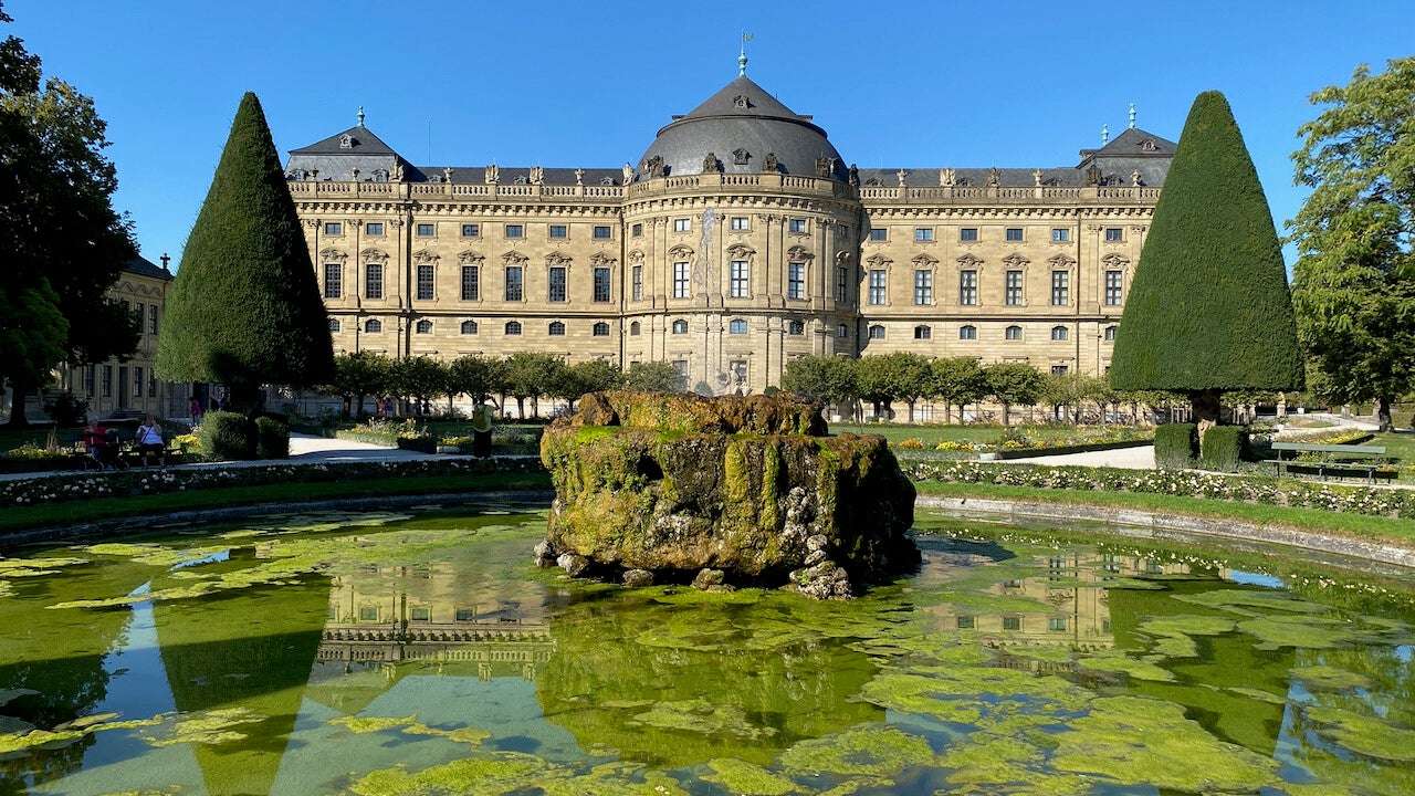 Na de middag bezoeken we het stad(je). Over een brug die ons herinnert aan de Karelsbrug van Praag gaan we naar de stad. Er zijn feestelijkheden en overal kan je wijn drinken. De voornaamste reden voor ons bezoek aan deze stad is de "residentie van Würzburg", een voormalig bisschoppelijk paleis met tuinen. Ondanks dat de website van de stad en een bord naast de deur aangeven dat de residentie open is, blijft de deur potdicht.