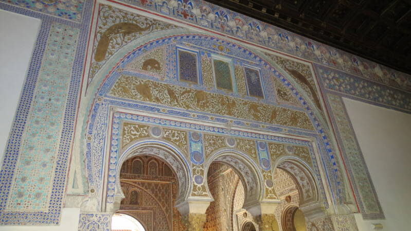 Het Alcazar is een complex van paleizen en patio’s en nog steeds de verblijfplaats van de Spaanse koningen waneer ze in Sevilla zijn. Het is opgenomen op de werelderfgoedlijst van Unesco en een meesterwerk van de mudéjararchitectuur.