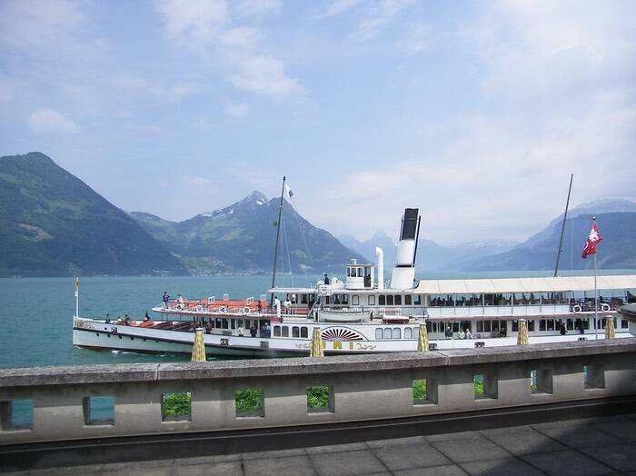 In Treib, stopplaats van toerboten en startplaats van de Treib-Seelisberg-Bahn, vinden we onder de platanen een uitstekende aanlegplaats.  Met de boot "Schwyz" gaan we via Gersau terug naar Beckenried.