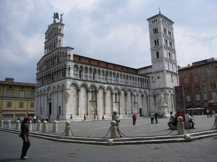 De tocht naar Lucca, ditmaal langs de autostrade, verloopt zonder problemen. Links zien we de witte wonden van de marmergroeven van Carrara en we volgen de bergen tot aan Lucca dat in de vlakte ligt. Het is een volledig omwalde stad waarvan het grootste gedeelte autovrij of autoluw is.We vinden een plaatsje op een verlaten reuzegrote parking aan de stadsrand. Na 200m stappen staan we aan de porta San Donato en kan de verkenning beginnen.