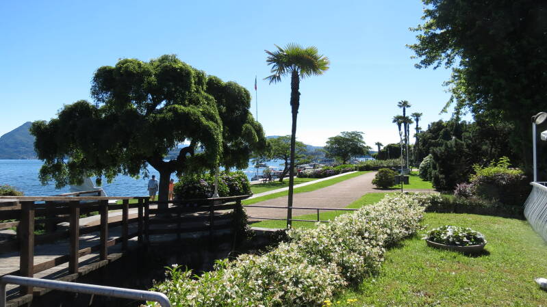 Na het ontbijt gaan we op weg naar het station van de toerboten, in het centrum van Baveno. We komen langs de staanplaats voor motorhomes van de stad. De plaats is groot met alle voorzieningen, maar vlak naast een erg drukke spoorlijn gelegen. Hier 12 euro betalen voor weinig nachtrust, dan kan je beter bergop voor 17 euro de relatieve rust van La Tranquilla opzoeken. Je krijgt er dan de morgenfitness - indien je vers brood wilt - nog gratis bij.