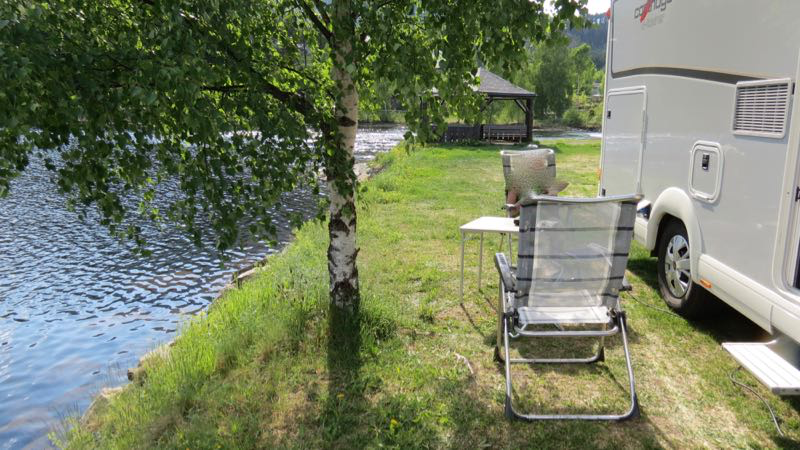 Voor vanavond hebben we tussen de bergen een camping in Randsverk gevonden. Het zal opnieuw een rustige nacht worden, enkel een bulderende bergbeek kan een storende factor zijn.