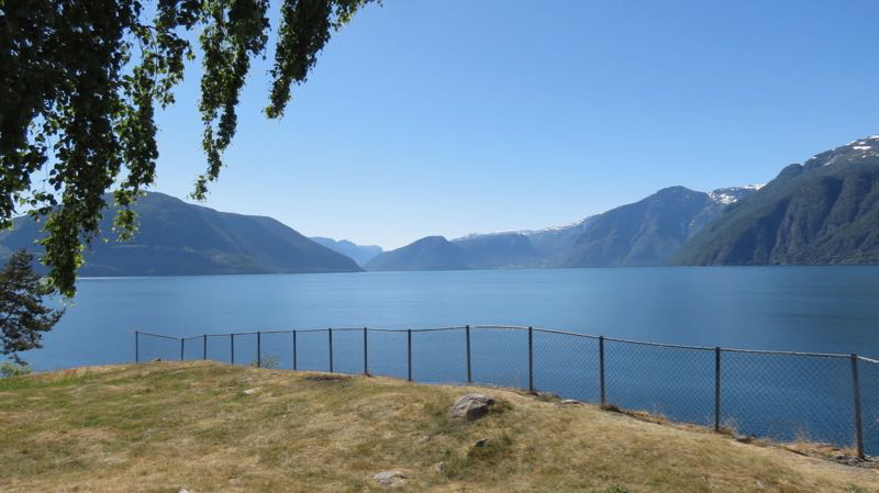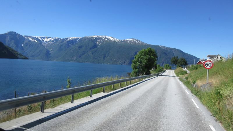 De weg langs de Sognefjord begint normaal breed en wordt later zeer smal, loopt dicht en soms ver van de fjord, is dikwijls steil maar later vlak, een typisch Noorse weg dus.