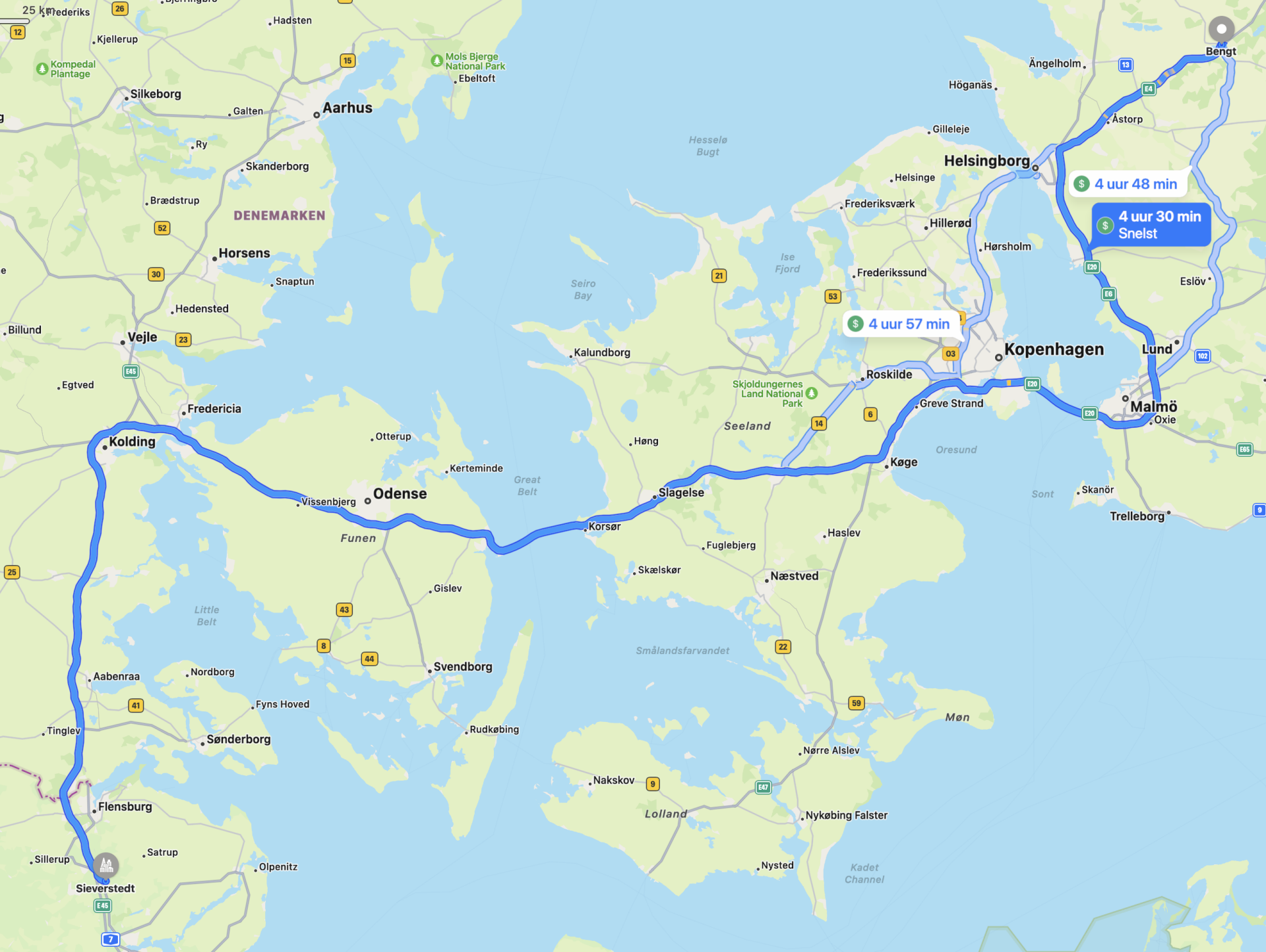 De morgenstond heeft ... enz. dus om 5u vertrekken we richting Nederland. Meestal gaat onze rit naar het noorden over Venlo en zo verder richting Hamburg, maar ik heb voor deze reis besloten om voor de navigatie Apple kaarten te gebruiken i.p.v. de Garmin 760 LMT-D. Die Garmin heeft mij de laatste jaren te veel geërgerd en de nieuwe navigatie-app van Apple ziet er goed uit, ik hou ook van de Vlaamse stem.