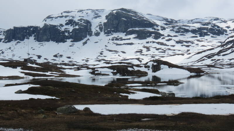 Meren, sneeuw en ijs, zon en regen, prachtige weg en wegenwerken, we hebben vandaag alles gehad. De rit over de bergpas de Haukelifjell is wondermooi. Door smalle donkere tunnels, over meestal kronkelige smalle maar ook af en toe kaarsrechte brede wegen met steeds een wondermooie natuur om veelvuldig bij stil te staan.